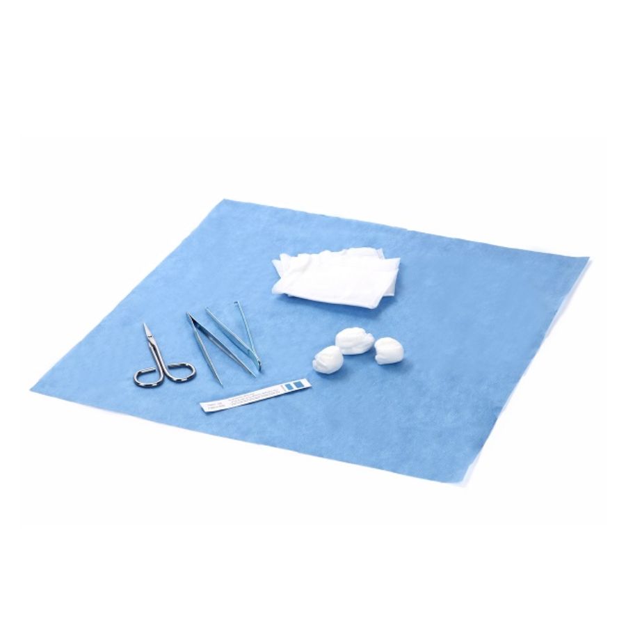 Spunlace bolak, 35 g/m² spunlace, 3 pz Apaintzeko pinza botatzeko, metalezkoa, punta zorrotza, 12 cm, 1 pieza Ehun-pintza, metalezkoa, 12 cm, 1 pieza Spunlace pads, 14,5 x 19,35 cm, tolestutako tamaina 7,25 x 9,75 cm, 4 geruza, 3 pcs Suturak kentzeko guraizeak, metalezkoak, 14 cm, 1 pieza Erretilua, 17 x 11 cm, 1 pieza Itzulgarria, 40 x 40 cm, 35 g/m² SMS ehundu gabeko ehuna, 1 pieza Esterilizazio adierazle txartela, 1 pieza |
